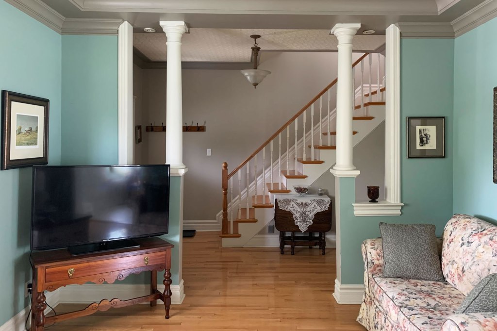 Living room with view of foyer